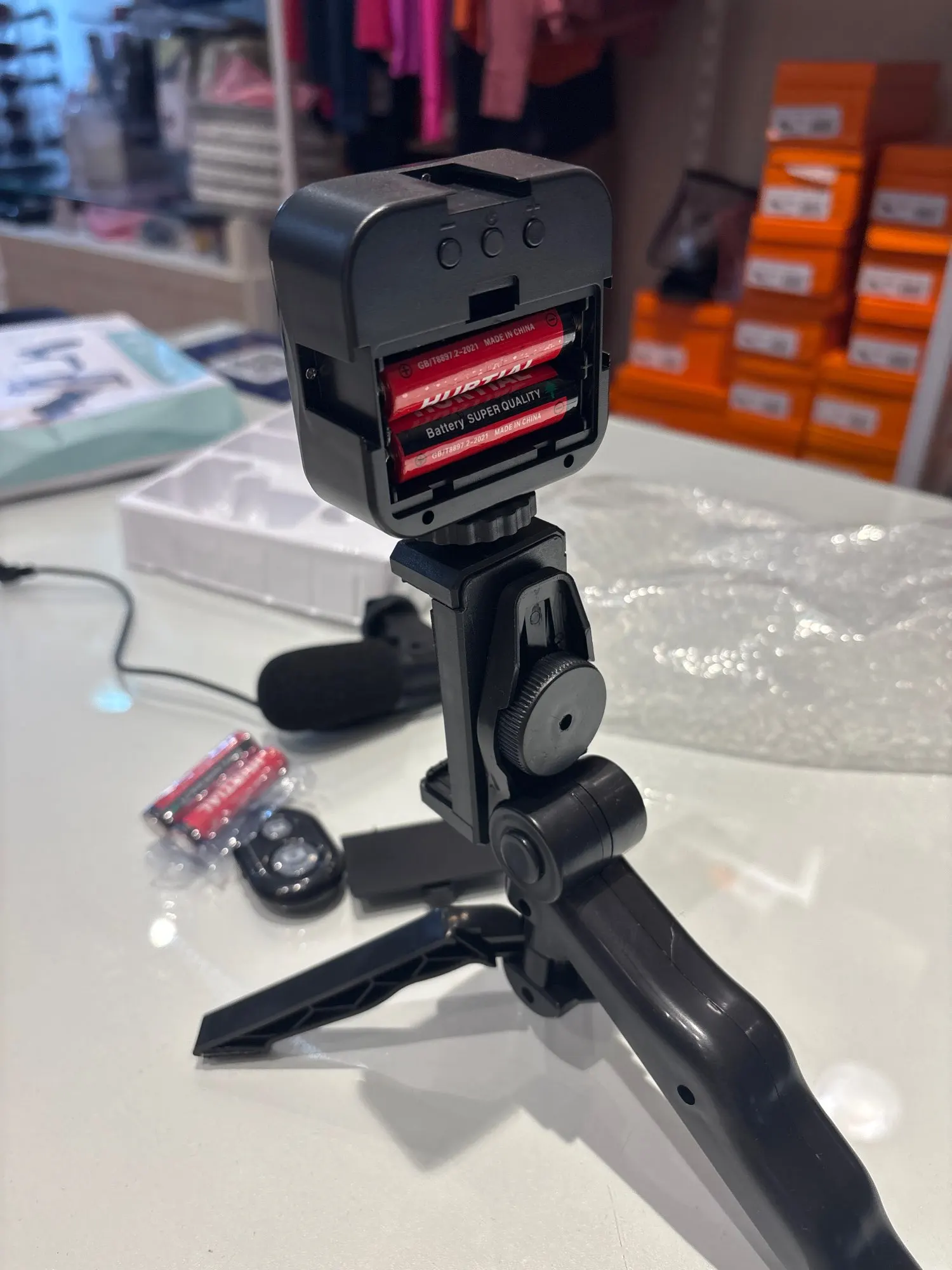 The kit includes a dimmable LED light with remote control for flawless ambience, a stable foldable tripod compatible with most smartphones, and an enhanced microphone for clear audio indoors or outdoors. Lightweight and portable, it’s perfect for creators on the move.